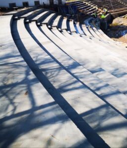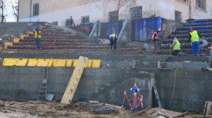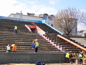 De altfel, continuă activitățile de spargere a gradenelor, montare a armaturii, cofrare și turnare beton la tribuna veche.