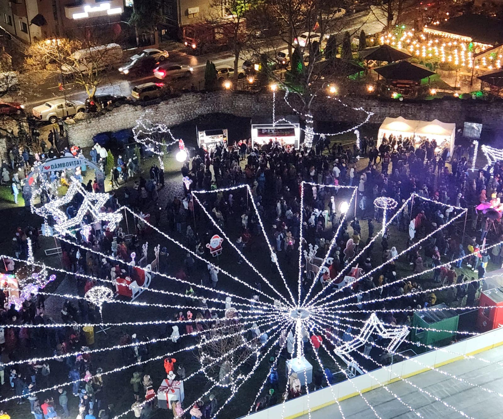 „Curtea Domnească” din Târgoviște a strălucit la ceas de seară în prima zi a evenimentului „Crăciunului la Turn” , după ce luminițele festive au fost aprinse. Chiar dacă au fost precipitații, dâmbovițenii nu s-au lăsat învinși de lapoviță și au venit în număr cât mai mare pentru a admira decorațiunile de Crăciun și de a se bucura de turta dulce și vinul fiert.