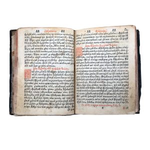 “Îndreptarea Legii”, cel mai important codice de legi apărut în Țările Române în Evul Mediu, Târgoviște, 1652, exemplar foarte rar. Alături de Biblia de la București, din 1688, și de Cazania lui Varlaam, din 1643, ”Îndreptarea Legii” reprezintă unul dintre cele mai valoroase monumente ale Umanismului românesc.