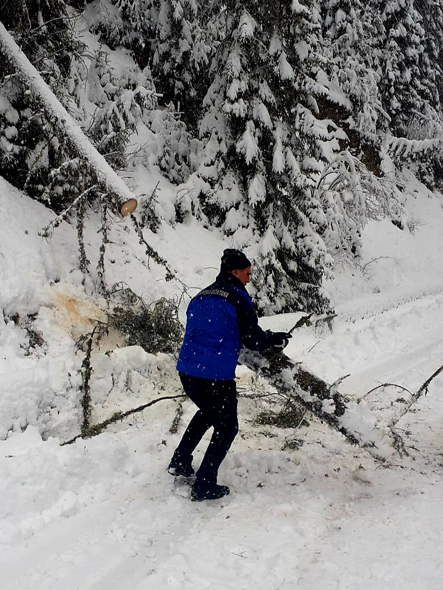 Acțiunea, de îndepărtare a mai multor brazi căzuți din cauza vântului puternic, a durat aproximativ 30 de minute.