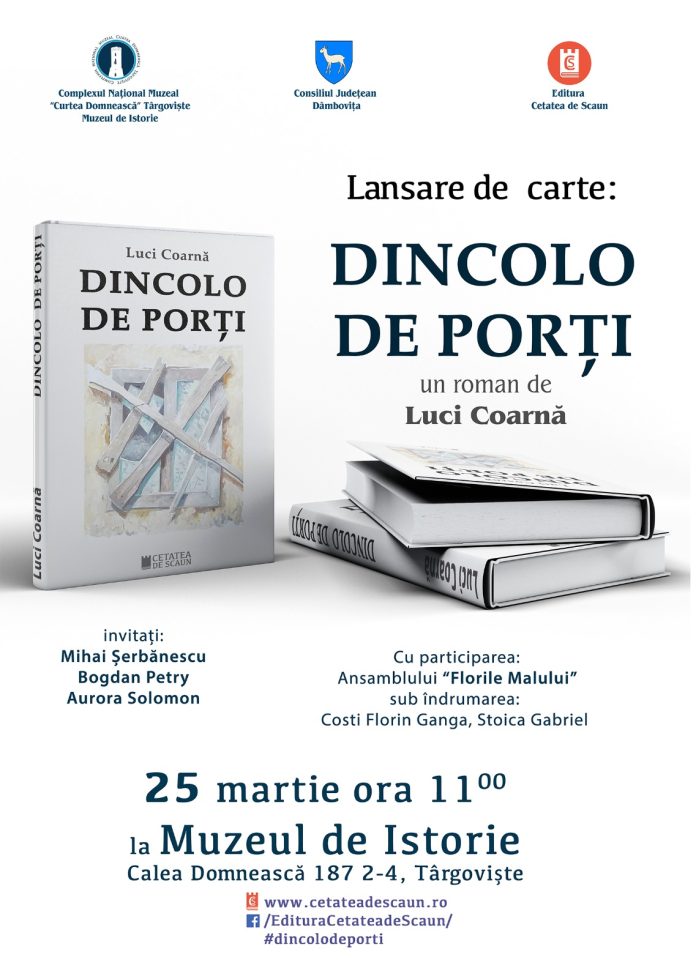 De la ora 11:00, are loc lansarea romanului „Dincolo de porți”, semnat de Luci Coarnă. Este un roman bazat pe fapte reale, o poveste de viață despre curajul unui om de a înfrunta orice obstacol pentru a ajunge într-o lume liberă de comunism.