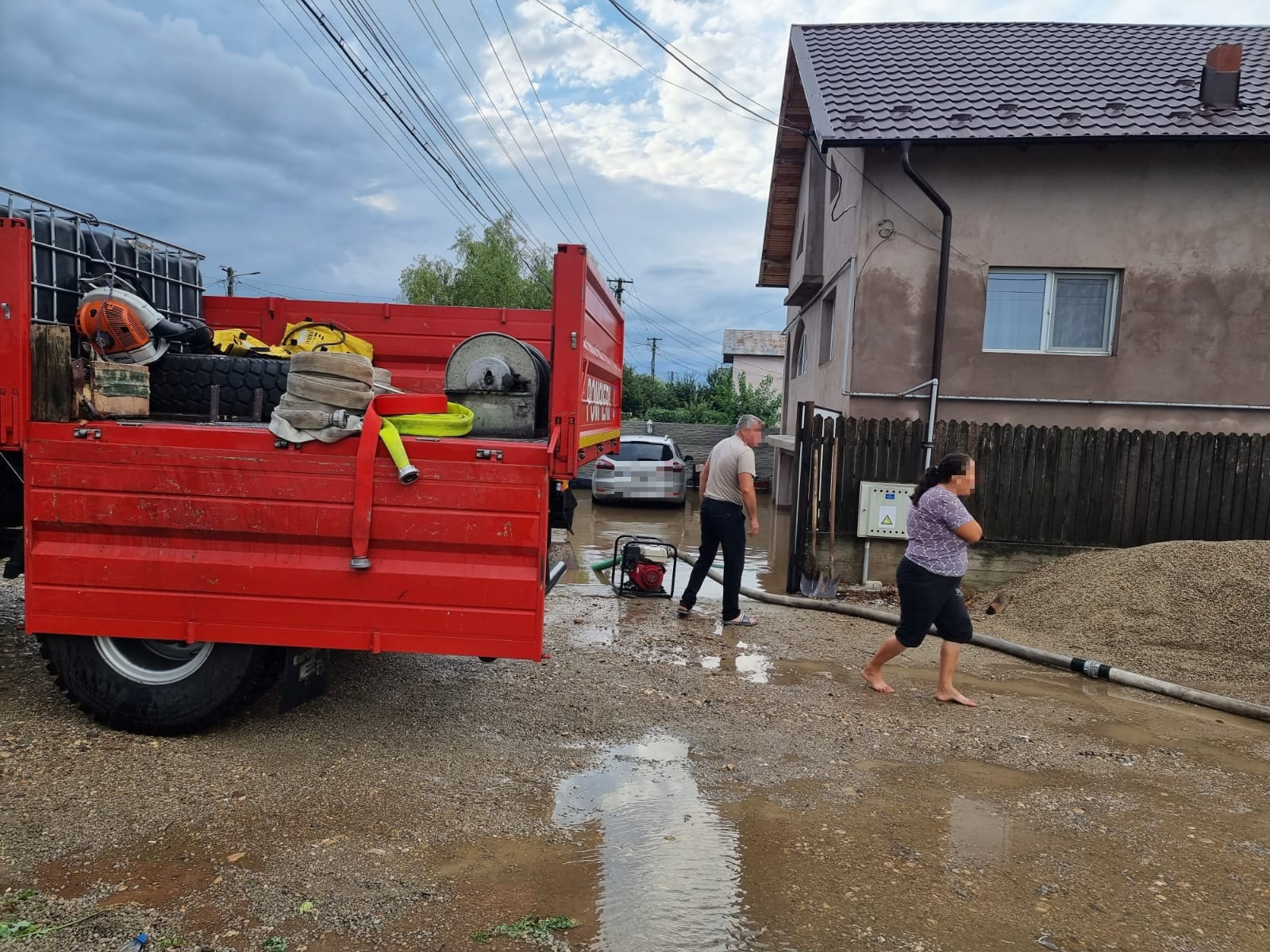 În urma ploilor abundente, pompierii au intervenit la mai multe gospodării din județ pentru evacuarea apei