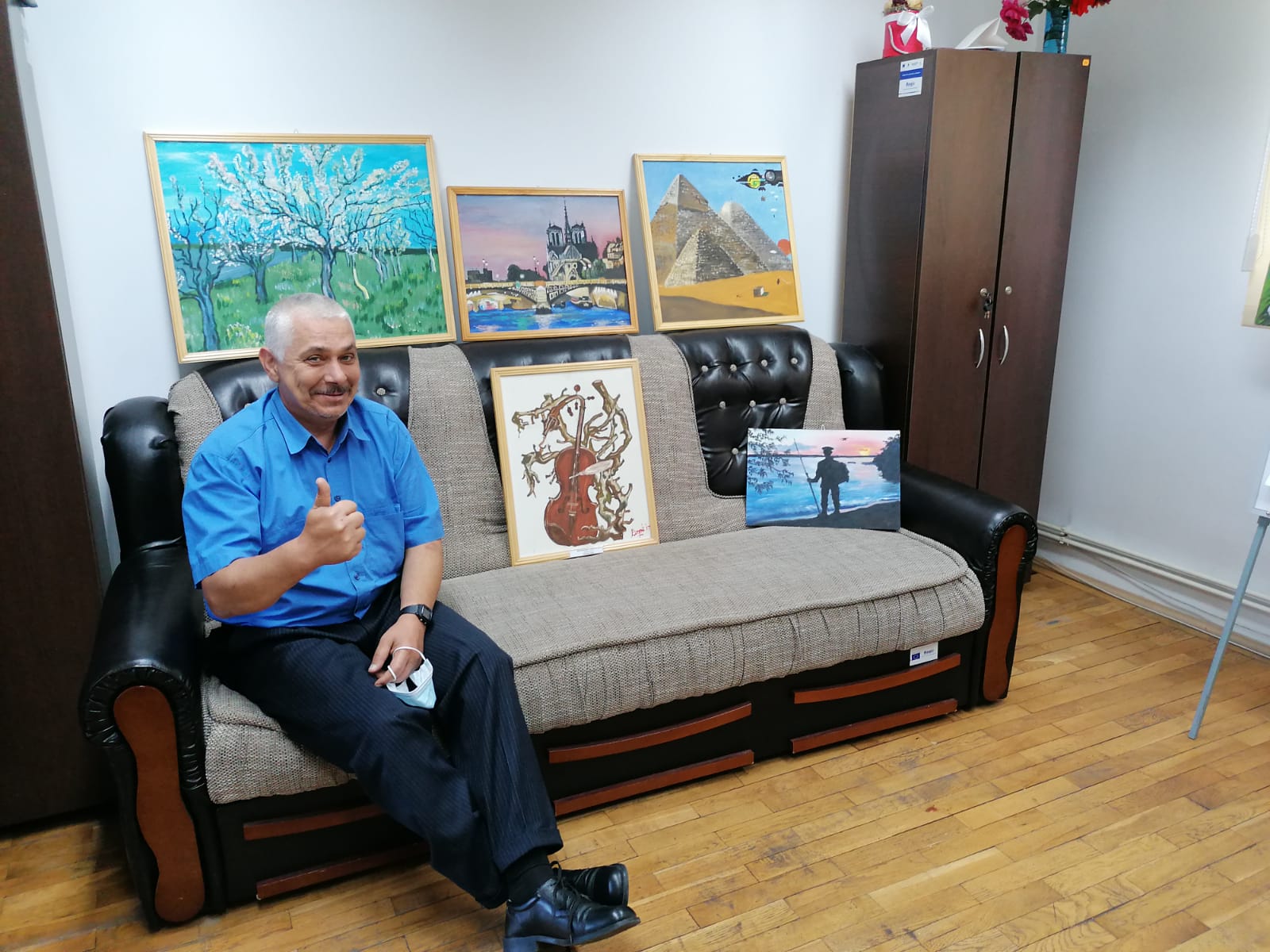 Are 49 de ani și pictează de când se știe, după cum spune. Domnul Narcis este beneficiar al