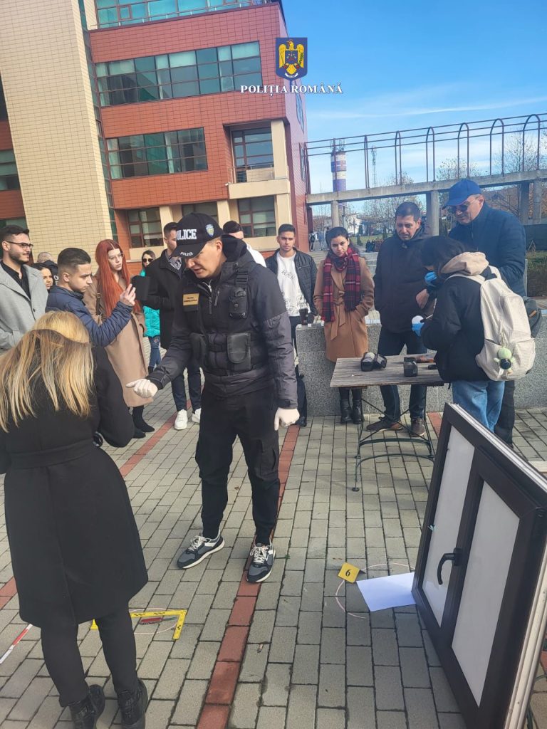 Astfel, polițiștii i-au invitat pe studenții de la Universitatea „Valahia” din Târgoviște – Facultatea de Drept și Științe Administrative să parcurgă împreună pașii și procedurile specifice pentru o înțelegere concretă și aplicată a modului în care se desfășoară investigațiile în cazurile de violență.